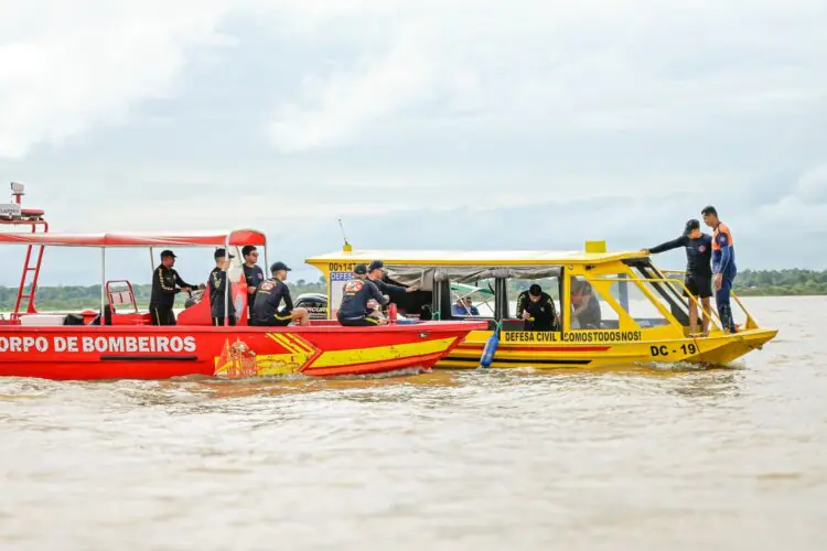 O Corpo de Bombeiros atua com duas frentes de trabalho: uma de busca de superfície na margem do Rio Solimões e outra de mergulho próximo da região do ocorrido.