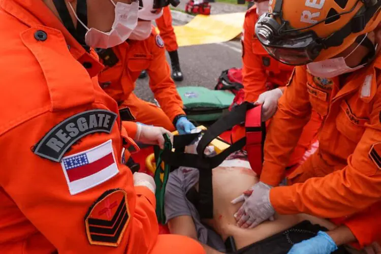 A atividade integrou a programação do Curso de Salvamento Veicular (CSV), promovido pela corporação, e ocorreu na rua Jornalista Flaviano Limongi, no bairro Dom Pedro, zona centro-oeste de Manaus. No exercício, duas pessoas estavam presas às ferragens do veículo de passeio, enquanto as outras 12 vítimas, simuladas no micro-ônibus, passaram por triagem e foram encaminhadas à área de concentração de vítimas.