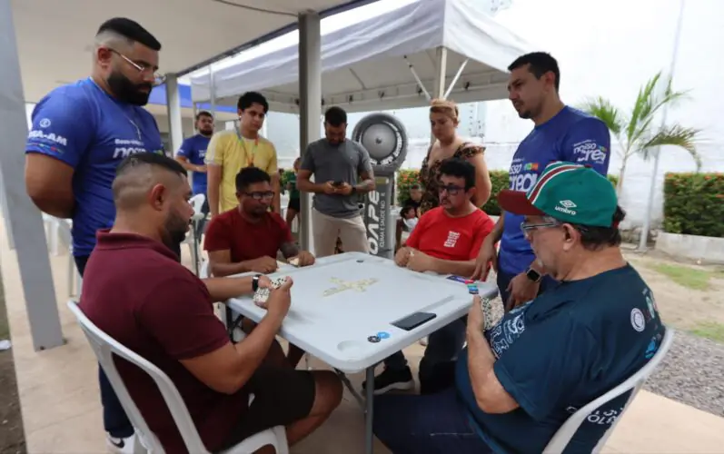 Kleison Medeiros revela que sua paixão pelo dominó nasceu ainda nos tempos da Universidade Federal do Amazonas (Ufam). “A gente tem um curso extracurricular, uma disciplina na Ufam que se chama Dominó 1 e 2”, brinca. “É claro que, no centro acadêmico, a gente sempre dá aquela brincadeirinha no intervalo das aulas, na hora do almoço. Então, desde a época da universidade, a gente já tem essa disciplina.”