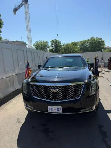 Para quem não conhece: o Beast é a limusine presidencial americana, blindada, com sistemas de comunicação de emergência e até suprimento de oxigênio próprio. Ver aquilo ao vivo tem um peso diferente.