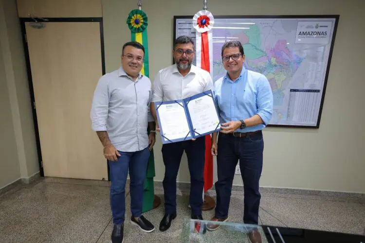 O governador Wilson Lima assinou, nesta quinta-feira (09/10), a ordem de serviço para o início das obras do Programa Asfalta Amazonas em Barreirinha (a 331 quilômetros de Manaus). A assinatura ocorreu na sede do Governo do Amazonas com a presença do prefeito de Barreirinha, Darlan Taveira.