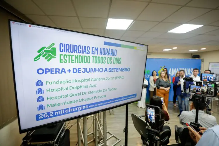 Como reforço ao programa, o governador anunciou o mutirão oftalmológico, que terá início em outubro e seguirá até dezembro, com a meta de realizar 12 mil cirurgias de catarata. A previsão é de 180 procedimentos por dia, sendo 6 mil no Hospital Delphina Aziz e outros 6 mil em clínicas privadas credenciadas.