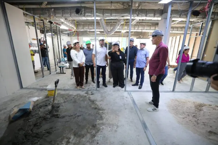 O governador também acompanhou as obras da Unidade de Internação do 4º andar do HPS 28 de Agosto. O novo layout segue o padrão do 5º andar, já entregue, e vai disponibilizar 83 leitos distribuídos em 12 enfermarias e três salas de isolamento.