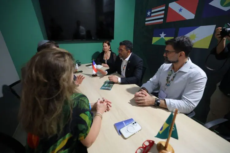 Na conferência, o governador reuniu-se com Anette Kilmer, representante do Banco Interamericano de Desenvolvimento (BID), para discutir ações voltadas à adaptação climática e segurança hídrica, com foco em saneamento, habitação e infraestrutura urbana sustentável. O encontro ocorreu no estande do BID, que apresentou na COP30 os programas Prosamin+ e Prosai como referências internacionais em resiliência urbana e inclusão social.