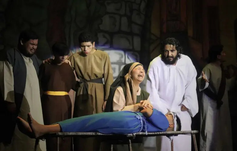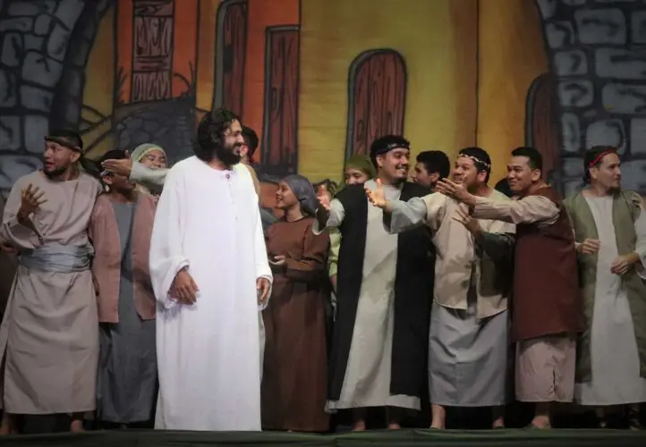 Com um elenco de mais de 30 personagens e mais de 500 voluntários envolvidos diretamente, o espetáculo transforma o palco em um museu vivo, onde cada cena revela um capítulo marcante da trajetória de Jesus Cristo – da criação do mundo à sua ressurreição e ascensão.