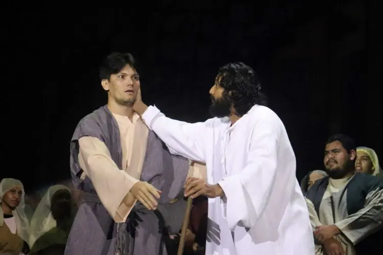 Com um elenco de mais de 30 personagens e mais de 500 voluntários envolvidos diretamente, o espetáculo transforma o palco em um museu vivo, onde cada cena revela um capítulo marcante da trajetória de Jesus Cristo – da criação do mundo à sua ressurreição e ascensão.