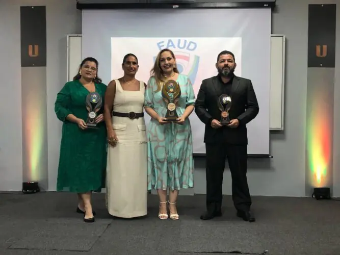 A Revista Manauara foi uma das homenageadas na noite da última sexta-feira (30) pela Federação Amazonense Universitária de Desporto (FAUD) durante a cerimônia do prêmio “Melhores do Ano”, evento que reuniu atletas, técnicos, instituições de ensino superior, profissionais de imprensa e parceiros que se destacaram na temporada 2025 do desporto universitário no Amazonas. A solenidade foi realizada no auditório da Uninorte, no bairro Chapada, zona centro-sul de Manaus.